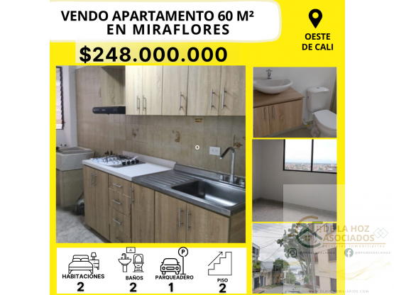 Pesos ColombianosEste apartamento de 60 m² en segundo piso presenta una distribución técnica eficiente: sala comedor integrada, 2 habitaciones con closet, 2 baños, cocina semi-integral y zona de oficios dedicada, optimizando el espacio para uso diario práctico.